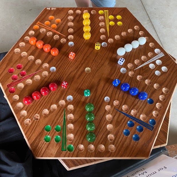 SIX-PLAYER WAHOO BOARD WITH 1-INCH MARBLES AND DICE $80